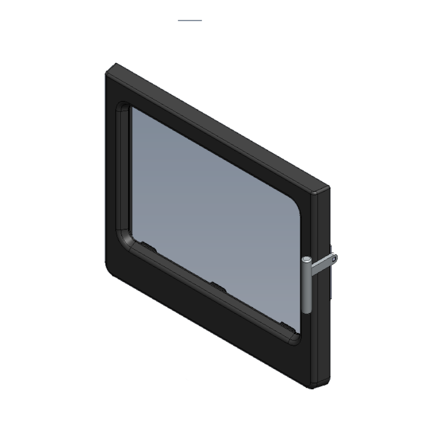 This item is a complete door suitable for the Ashcott Wide woodburning stove, including the door, glass, handle rope seals and hinge fixings.