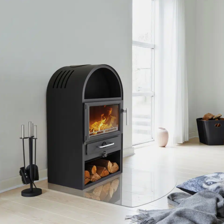 Installation is flexible: the stove comes standard with a top-mounted smoke outlet but can be rear-outlet fitted for a cleaner look, with minimal space requirements to combustible materials. It’s designed to fit compact spaces without compromising on power. Energy‑efficiency rated A+ and delivering around 82% combustion efficiency, it’s both eco‑friendly and effective. Whether heating a snug living area or adding visual warmth, the Varde Thurø 13 melds function and comfort seamlessly.